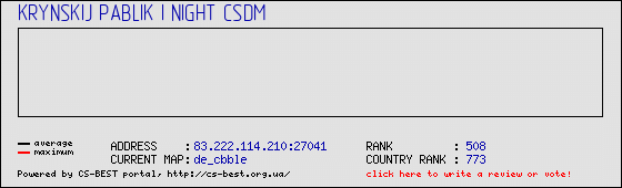 Пользовательское описание отсутствует. Если Вы являетесь владельцем данного сервера, Вы можете получить доступ к статистике и редактированию этого описания. Для этого перейдите по ссылке "Это мой сервер", расположенной в предыдущей таблице. Если ссылки нет - значит Вы все еще не зарегистрировались на нашем портале или забыли зайти под своим логином.