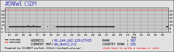 Пользовательское описание отсутствует. Если Вы являетесь владельцем данного сервера, Вы можете получить доступ к статистике и редактированию этого описания. Для этого перейдите по ссылке "Это мой сервер", расположенной в предыдущей таблице. Если ссылки нет - значит Вы все еще не зарегистрировались на нашем портале или забыли зайти под своим логином.