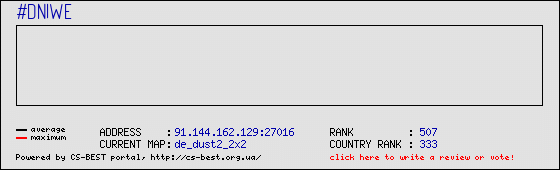 Пользовательское описание отсутствует. Если Вы являетесь владельцем данного сервера, Вы можете получить доступ к статистике и редактированию этого описания. Для этого перейдите по ссылке "Это мой сервер", расположенной в предыдущей таблице. Если ссылки нет - значит Вы все еще не зарегистрировались на нашем портале или забыли зайти под своим логином.