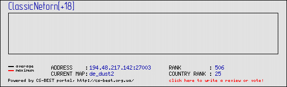 Пользовательское описание отсутствует. Если Вы являетесь владельцем данного сервера, Вы можете получить доступ к статистике и редактированию этого описания. Для этого перейдите по ссылке "Это мой сервер", расположенной в предыдущей таблице. Если ссылки нет - значит Вы все еще не зарегистрировались на нашем портале или забыли зайти под своим логином.