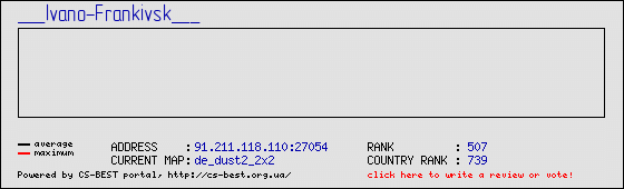 Пользовательское описание отсутствует. Если Вы являетесь владельцем данного сервера, Вы можете получить доступ к статистике и редактированию этого описания. Для этого перейдите по ссылке "Это мой сервер", расположенной в предыдущей таблице. Если ссылки нет - значит Вы все еще не зарегистрировались на нашем портале или забыли зайти под своим логином.