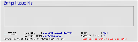 Пользовательское описание отсутствует. Если Вы являетесь владельцем данного сервера, Вы можете получить доступ к статистике и редактированию этого описания. Для этого перейдите по ссылке "Это мой сервер", расположенной в предыдущей таблице. Если ссылки нет - значит Вы все еще не зарегистрировались на нашем портале или забыли зайти под своим логином.