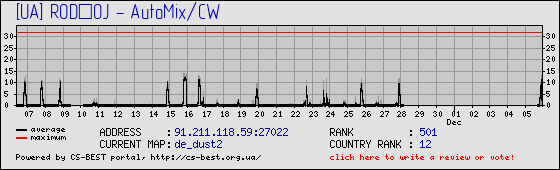 Пользовательское описание отсутствует. Если Вы являетесь владельцем данного сервера, Вы можете получить доступ к статистике и редактированию этого описания. Для этого перейдите по ссылке "Это мой сервер", расположенной в предыдущей таблице. Если ссылки нет - значит Вы все еще не зарегистрировались на нашем портале или забыли зайти под своим логином.