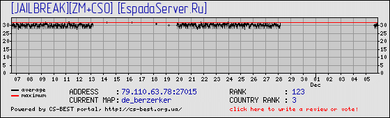 Пользовательское описание отсутствует. Если Вы являетесь владельцем данного сервера, Вы можете получить доступ к статистике и редактированию этого описания. Для этого перейдите по ссылке "Это мой сервер", расположенной в предыдущей таблице. Если ссылки нет - значит Вы все еще не зарегистрировались на нашем портале или забыли зайти под своим логином.