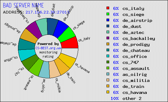 Пользовательское описание отсутствует. Если Вы являетесь владельцем данного сервера, Вы можете получить доступ к статистике и редактированию этого описания. Для этого перейдите по ссылке "Это мой сервер", расположенной в предыдущей таблице. Если ссылки нет - значит Вы все еще не зарегистрировались на нашем портале или забыли зайти под своим логином.
