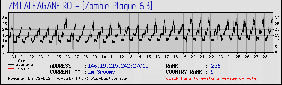 Connect on server using: - DNS: ZM.LALEAGANE.RO - IP: 146.19.215.242:27015 - No lag, no spam, no cheaters. - The server is using multiple anticheats systems & bug fixes - Admins online 24/7